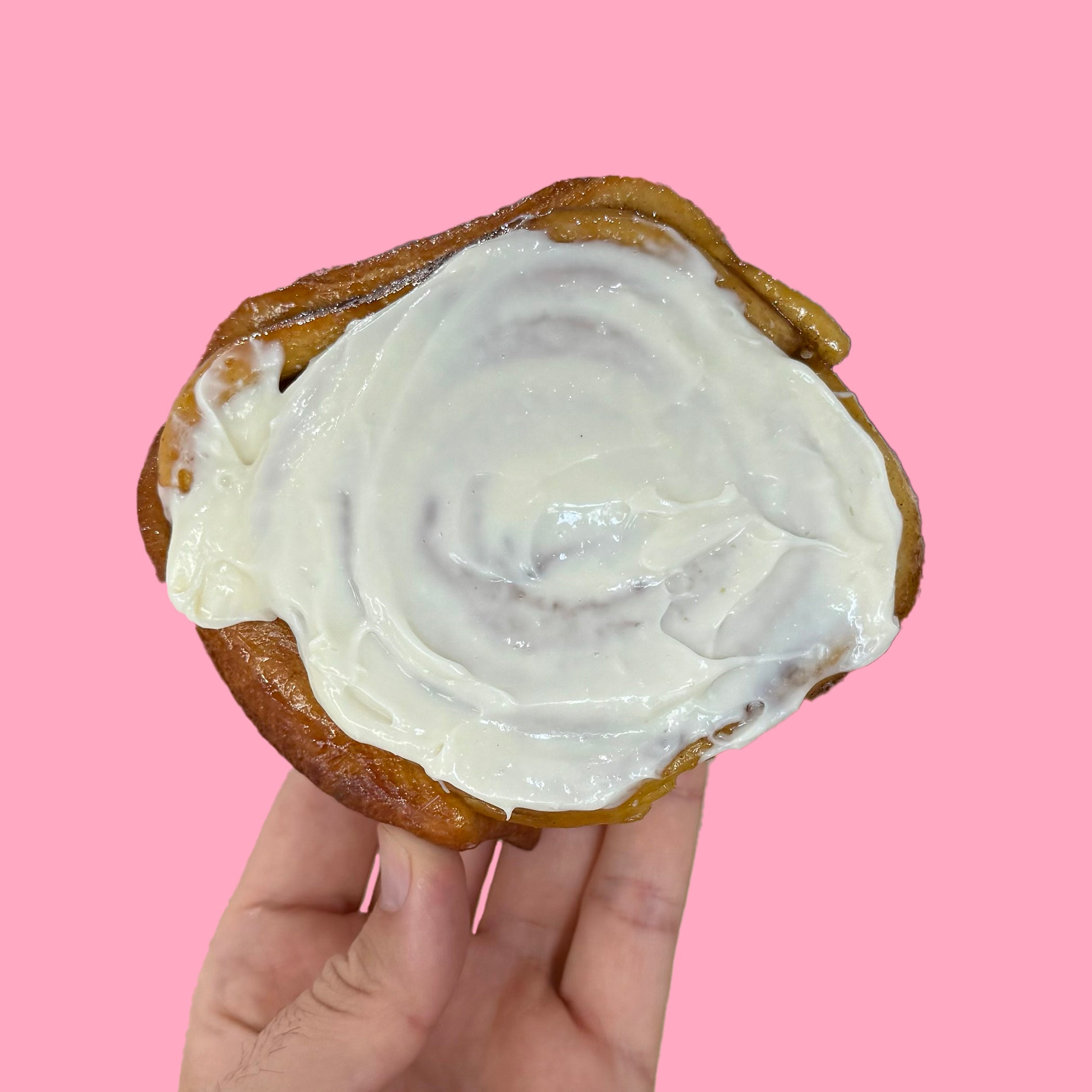A soft, fluffy cinnamon roll swirled with warm cinnamon sugar and topped with a rich cream cheese glaze