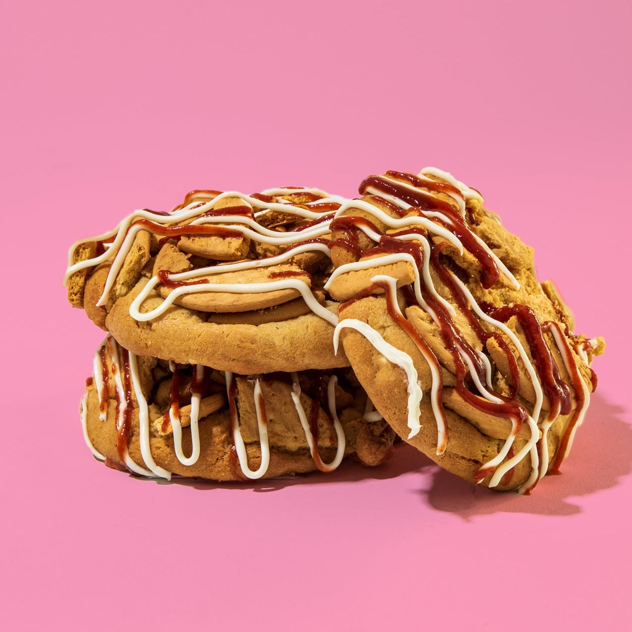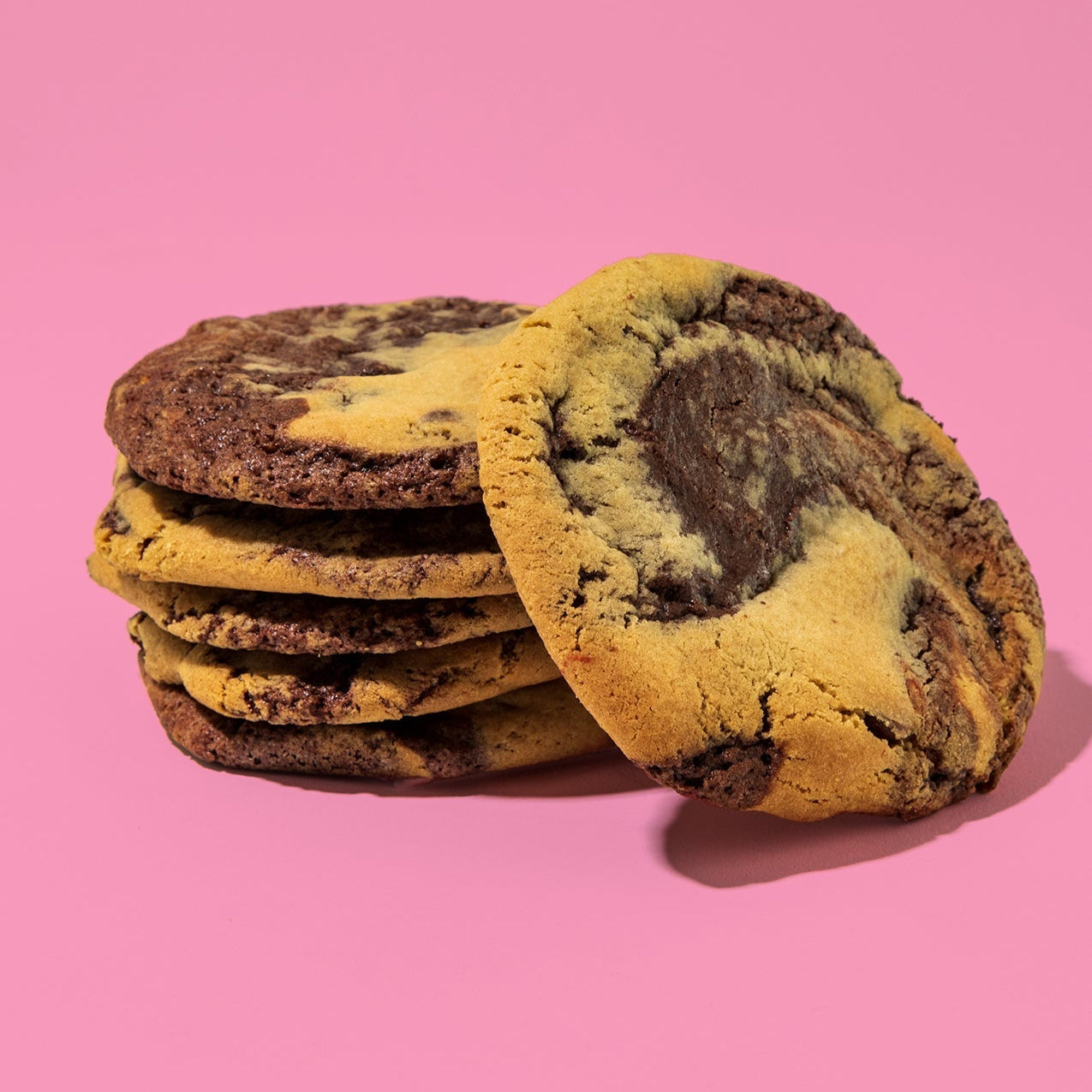 Signature dark chocolate dough stuffed with milk chocolate chips, topped with crisp graham cracker crumbs, and topped with torched marshmallow fluff.